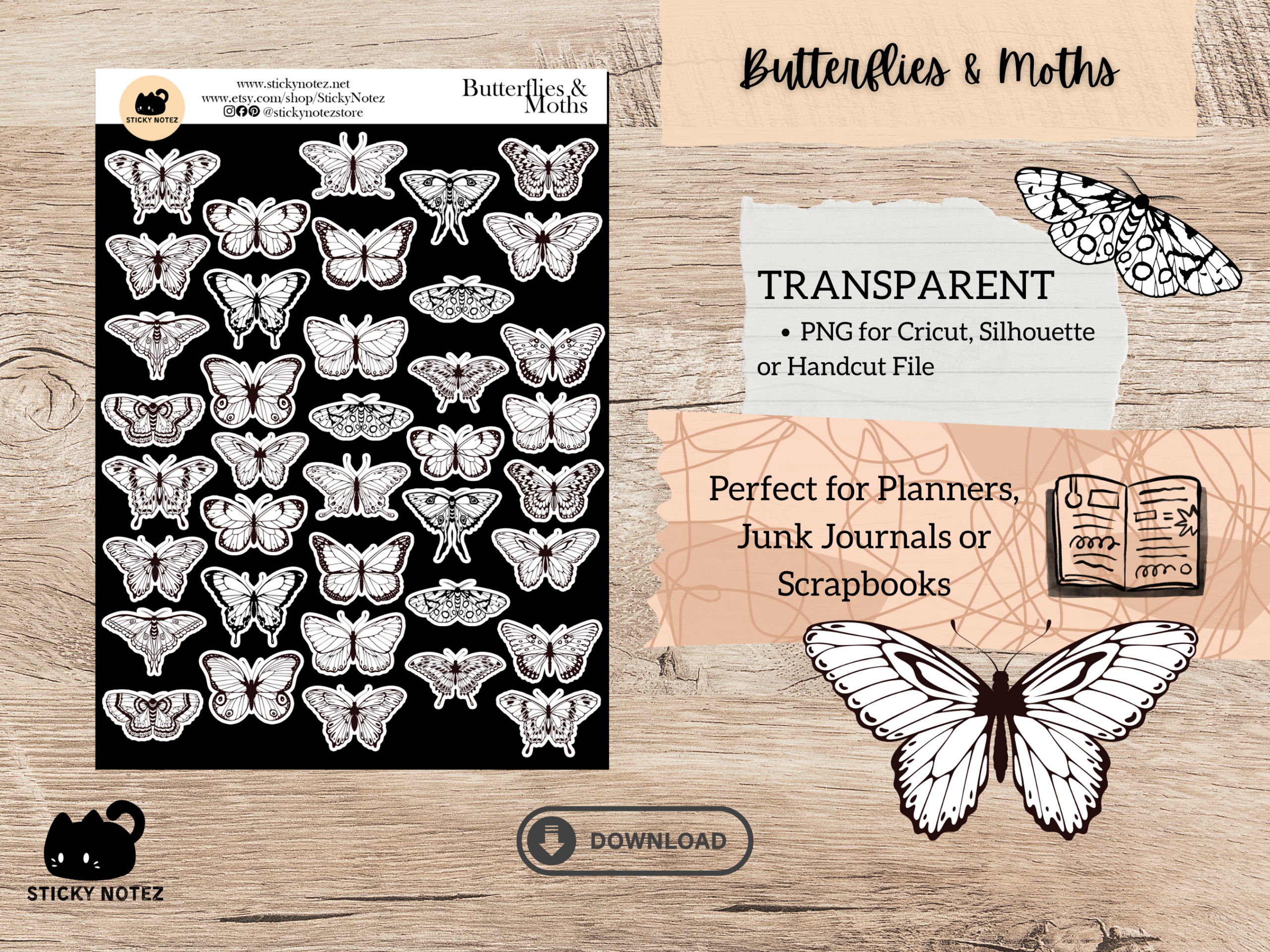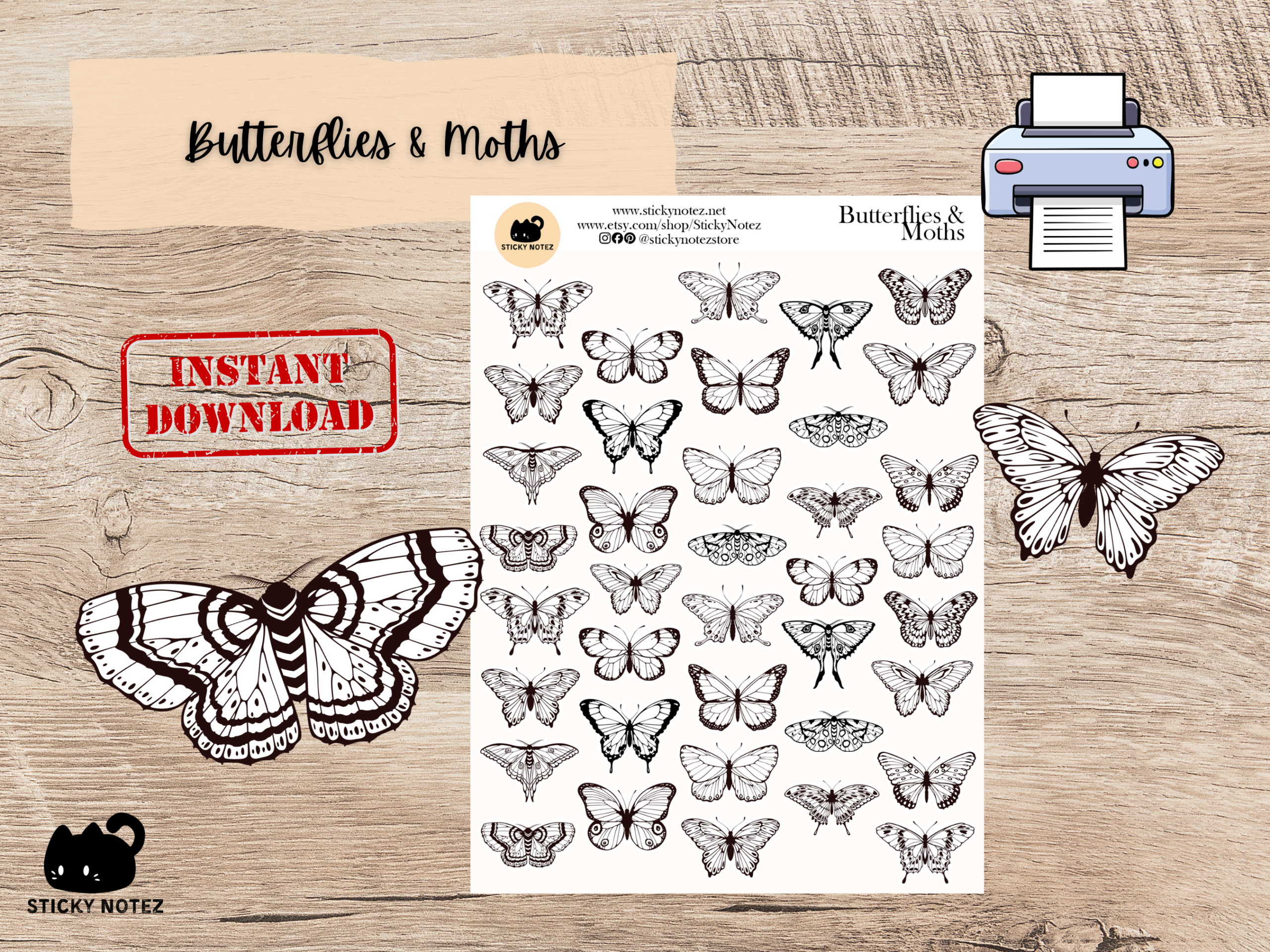 Butterflies & Moths Printable Stickers – Digital Download
