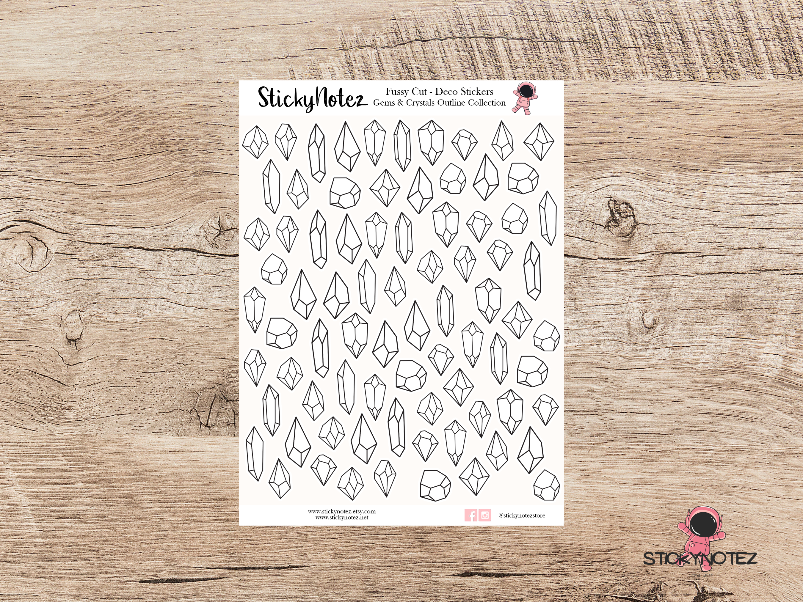 Gems & Crystals Outline | Kiss Cut | Decorative Printable Stickers | Planner Digital Stickers | Scrapbooking Stickers | Cricut/Silhouette
