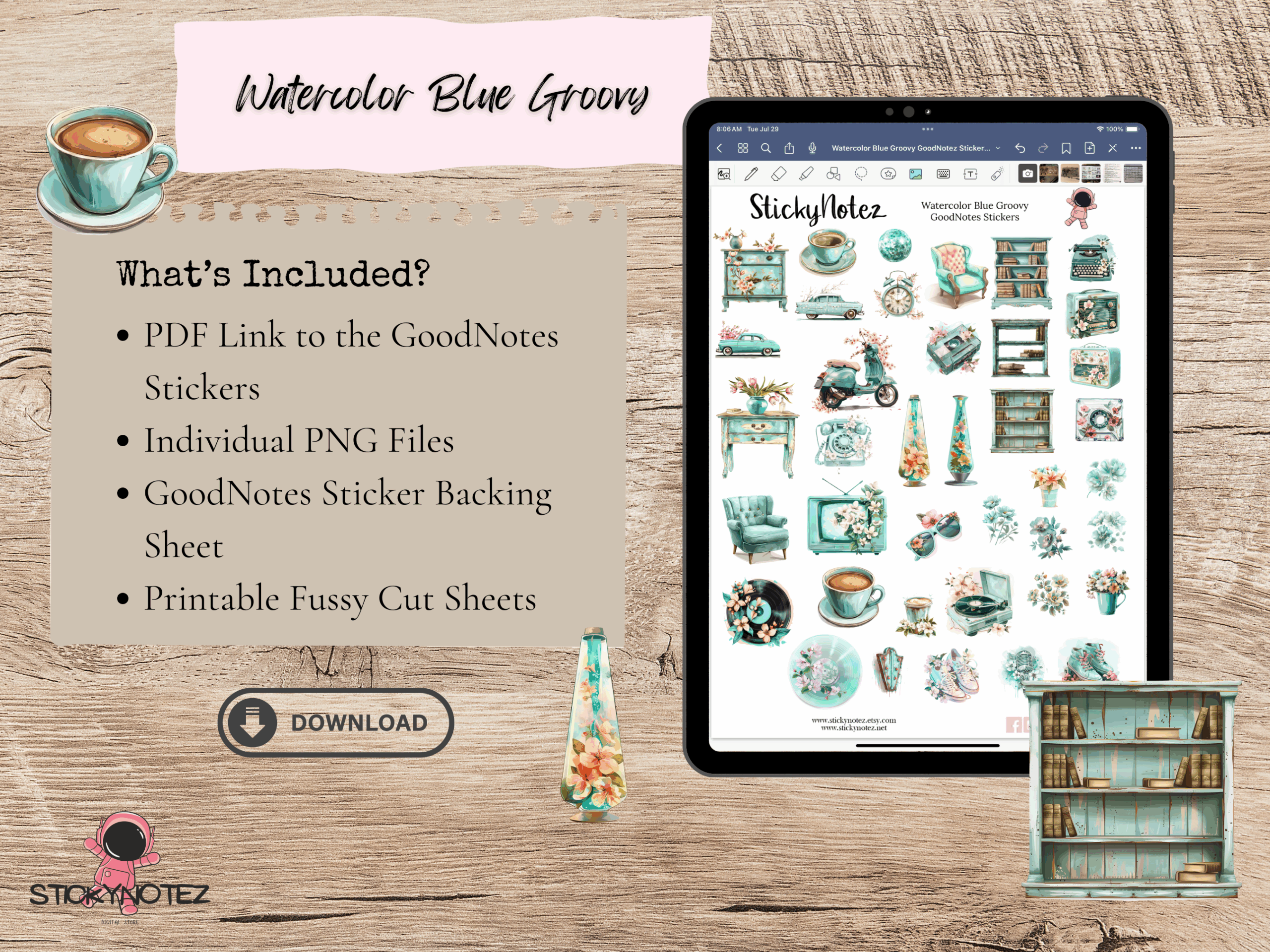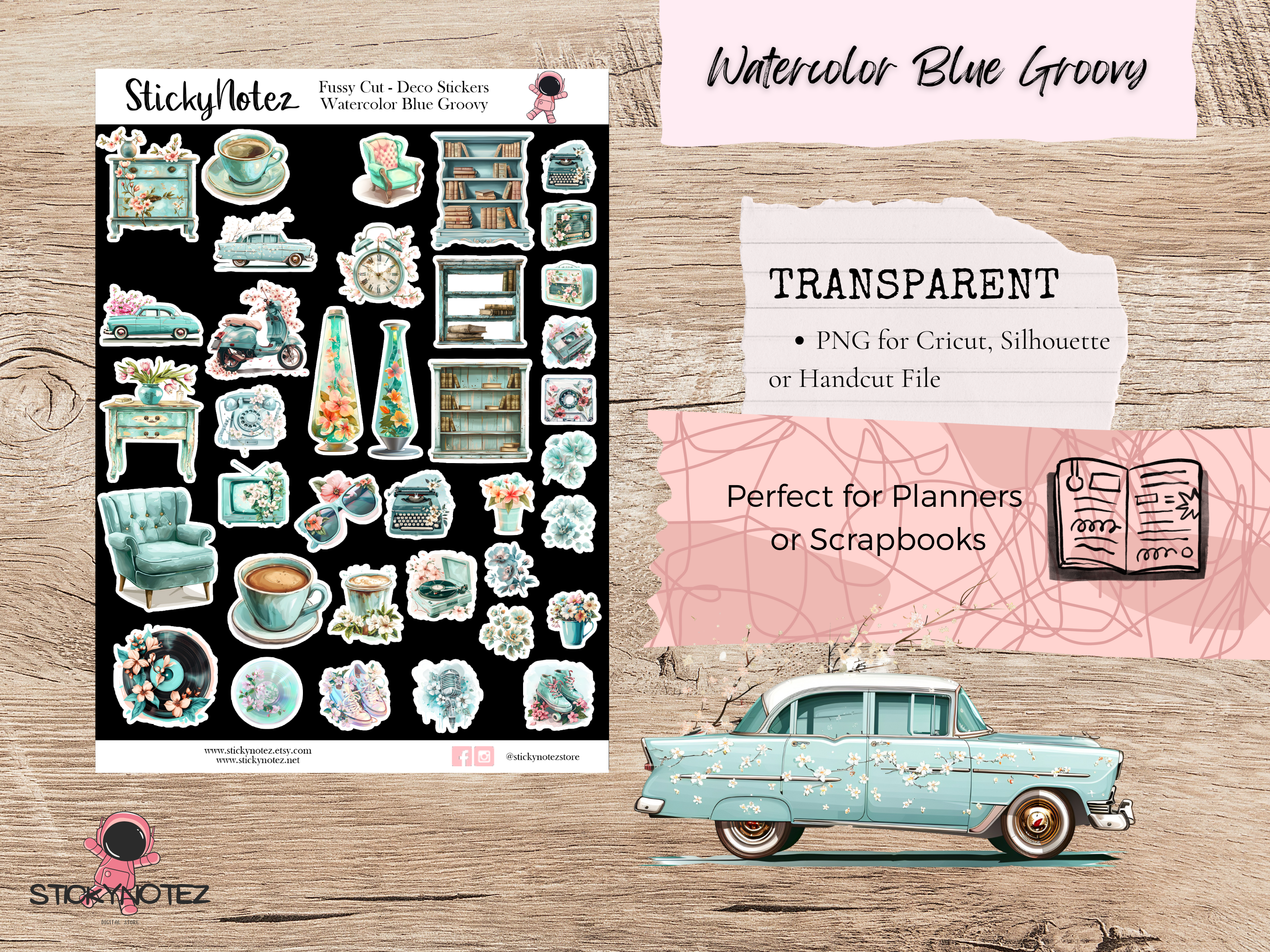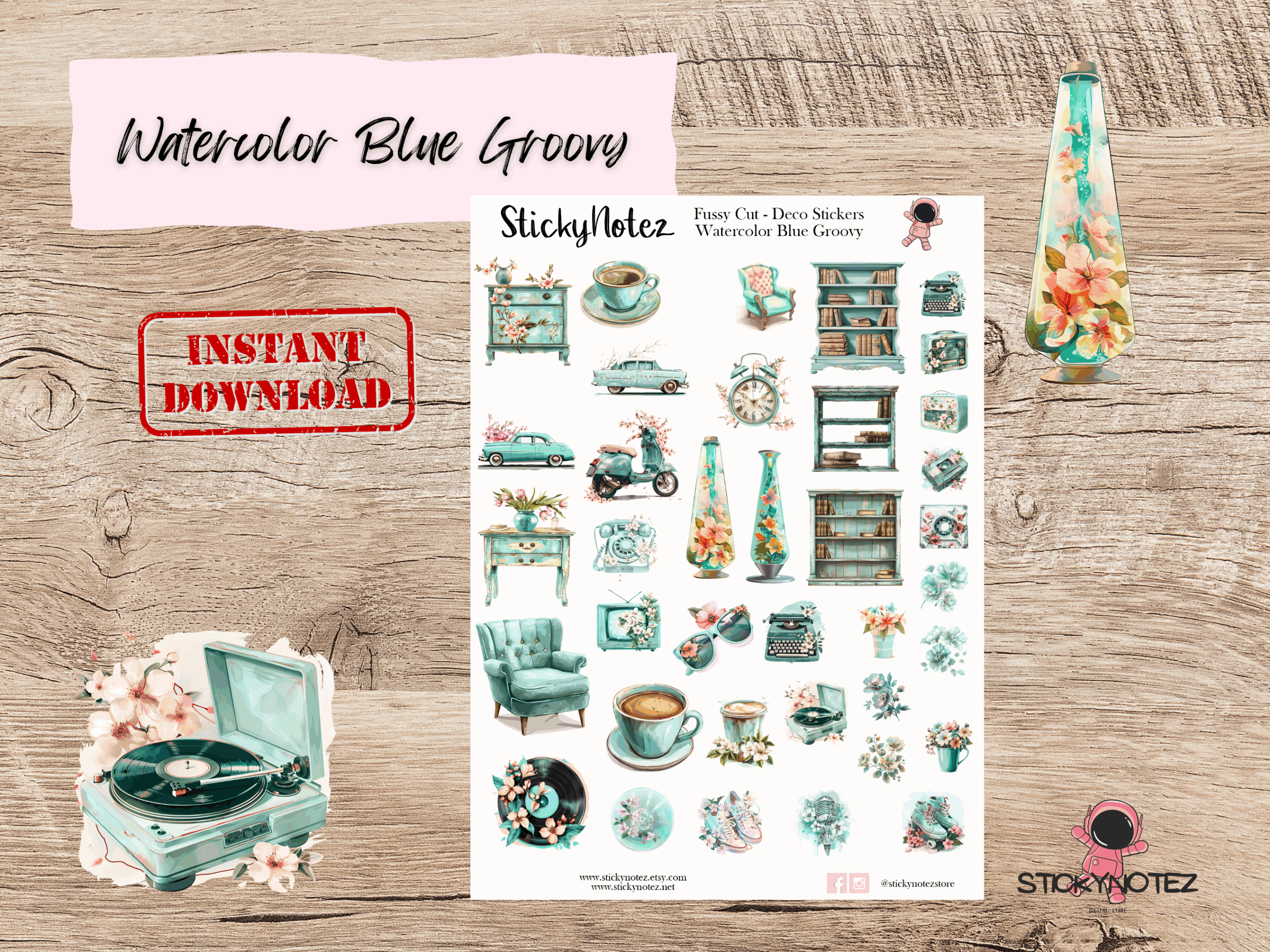 Bring a touch of retro to your planners, journals, and scrapbooks with these Watercolor Blue Groovy Digital Stickers! Perfect for digital planning, printable crafts, and fussy cutting, these high-quality PNG, PDF, and JPG files are easy to download and use with Cricut, Silhouette, or by hand. Or GoodNotes Stickers if you prefer to use them digitally.
